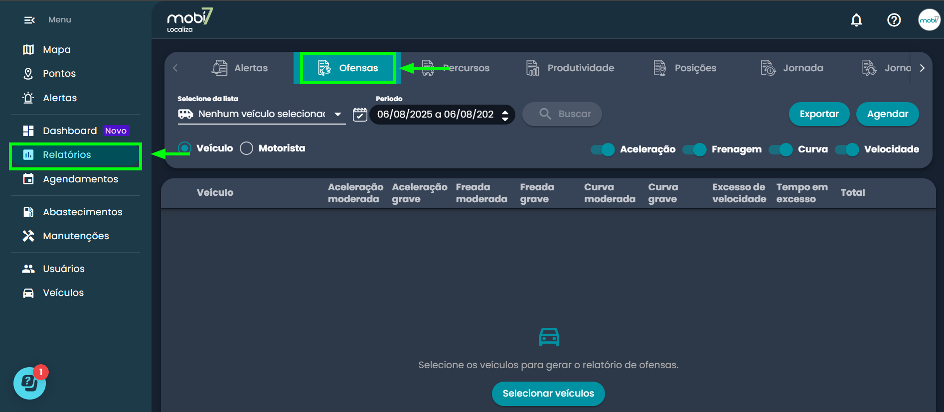 Na plataforma Mobi7, existem duas funcionalidades que ajudam a controlar o uso do veículo:...