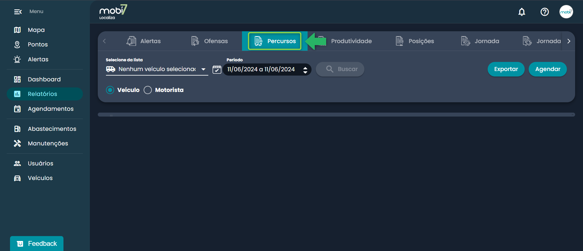 Para acompanhar a movimentação dos veículos da sua frota, existem dois relatórios na plataforma Mobi7 que podem te ajudar: o Relatório de Posições e o Relatório de Percurso.